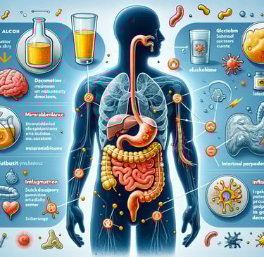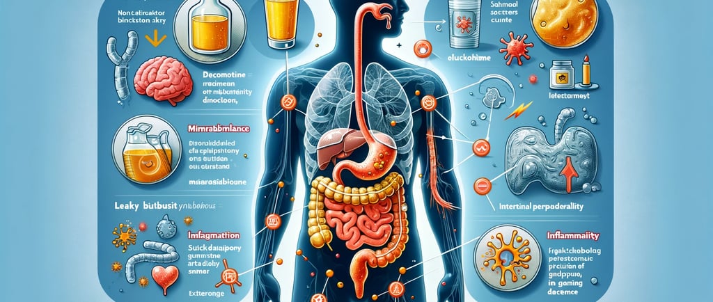 Disruption of Microbial Balance: Alcohol consumption can alter the composition of the gut microbiome by reducing the number of beneficial bacteria and promoting the growth of harmful bacteria. This imbalance can compromise the gut's ability to function correctly.